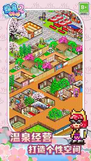 《温泉物语2》是一款模拟经营温泉旅馆的游戏。。玩家可以建设客房和店铺,,,,招揽客人,,挖掘温泉,,,,打造专属温泉乡,,成为受全世界瞩目的温泉旅馆。。。。通过游戏,,,,让大家活力十足地面对明天吧!!