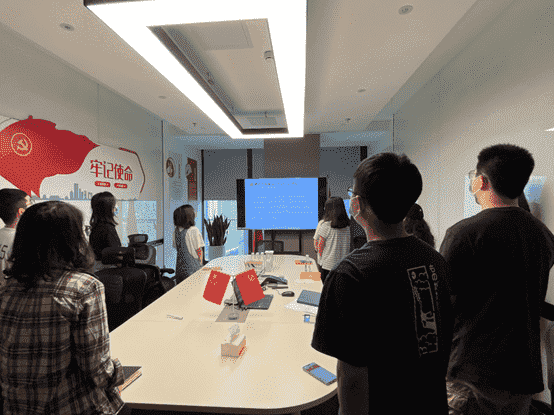 而后,,全体党员一起重新学习了解了目前的入党流程要求,,,各支部也将在后续工作中进一步发挥支部职能,,,,做好发展党员工作。。最后,,,全体党员面向党旗,,重温入党誓词。。。
