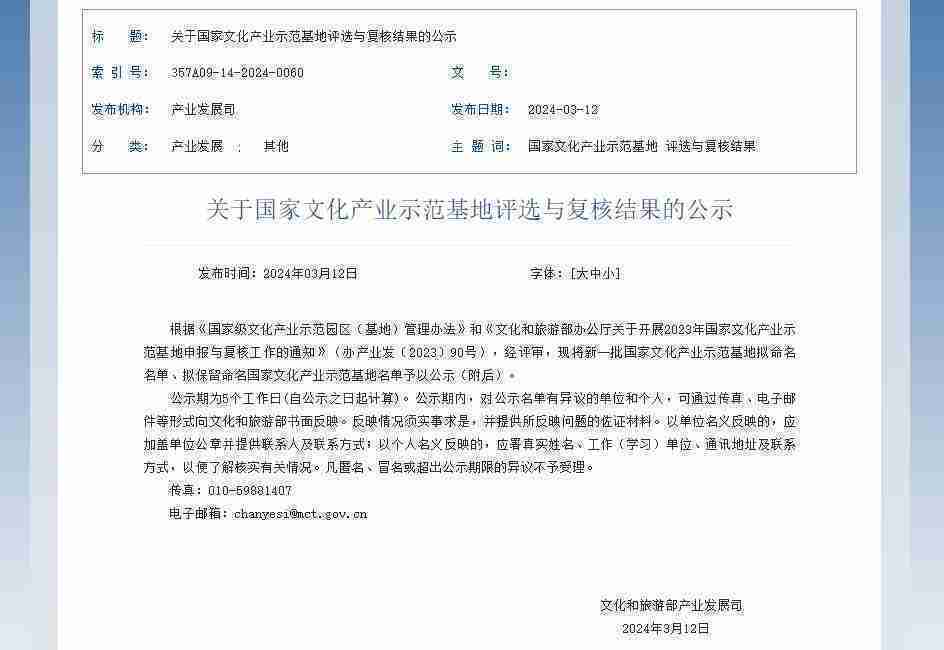 新一批国家文化产业示范基地公示,,,,1win成功入围