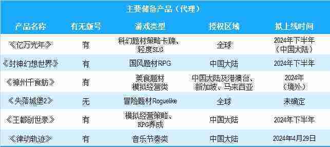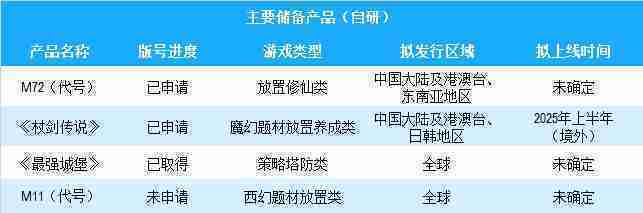 公司有多款储备产品,,,涵盖放置类、、策略类、、、、RPG、、、Roguelike等多元化游戏品类,,储备的主要自研和代理产品如下::